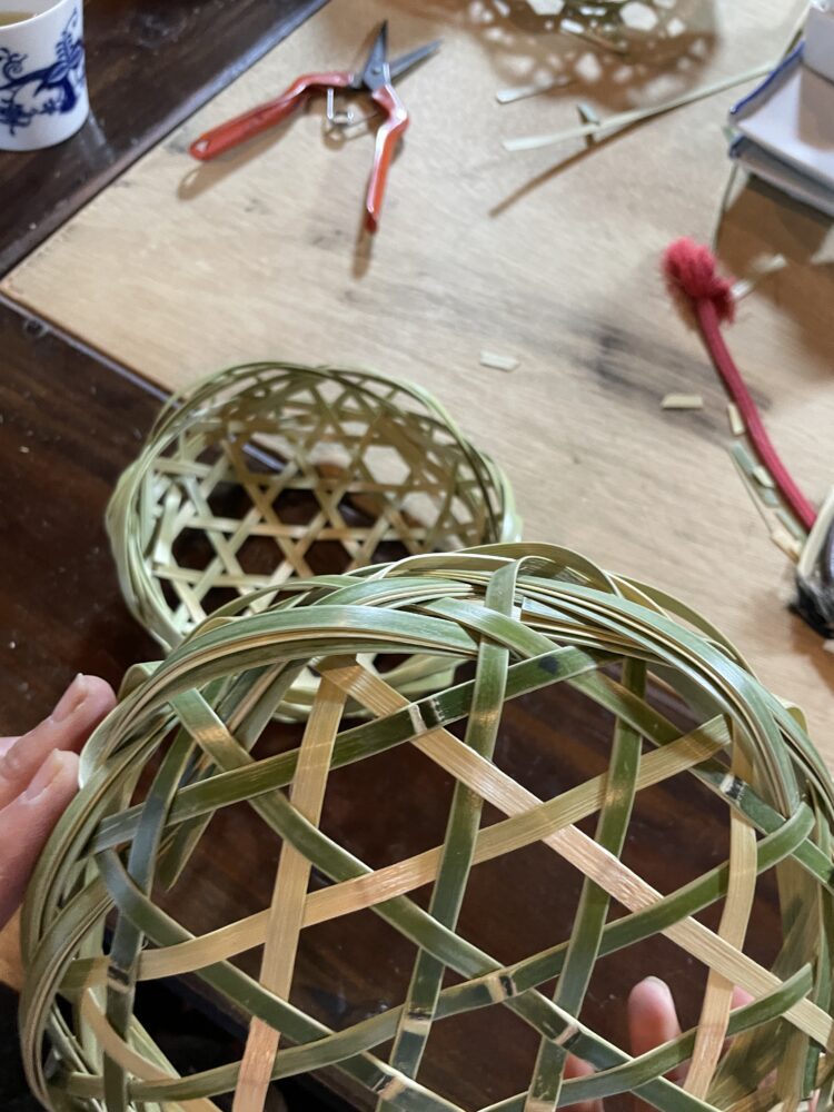 昔、武士の手仕事は、ひごを作り、竹かご編みだったとか。