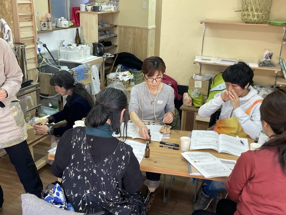 講師でありながら、今回はアシスタントもされる青山さん。青山さんは、自身の体調不良をアロマオイルを使って改善したきたとか。他にも様々な知識と経験が豊富すぎて、驚きます。